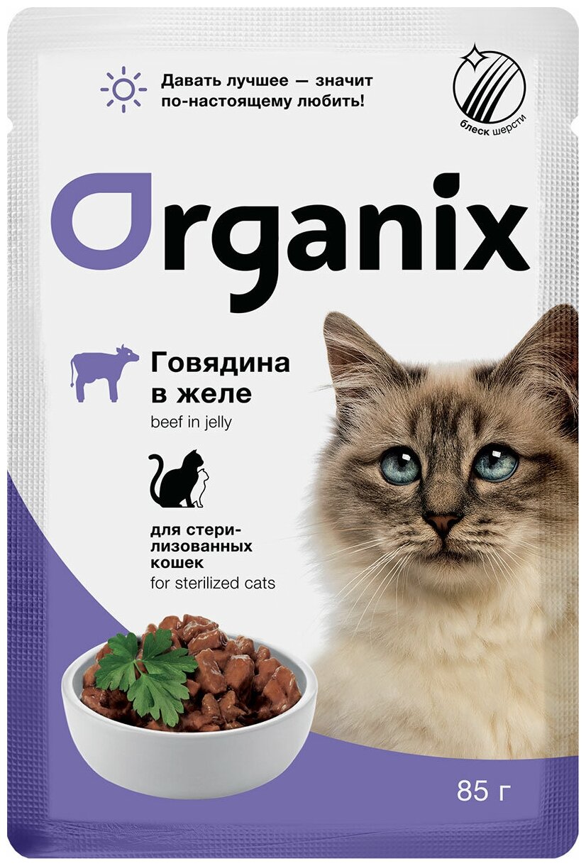 Корм Organix (в желе) для стерилизованных кошек, с говядиной, 85 г x 25 шт