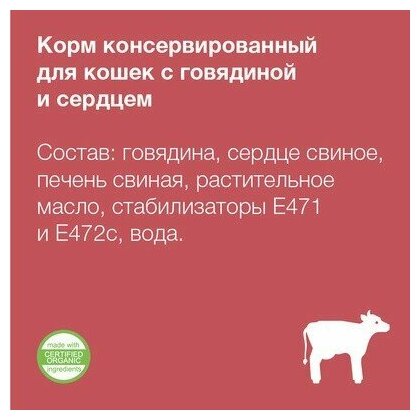 Organix консервы Консервы для кошек говядина с сердцем 11вн42 0,1 кг 24857 (10 шт)