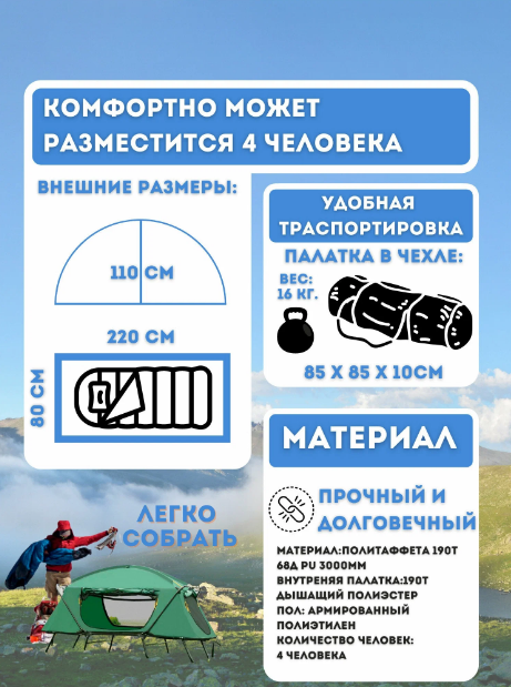 | Материал тента | полиэстер (210T полиэстер PU3000) |