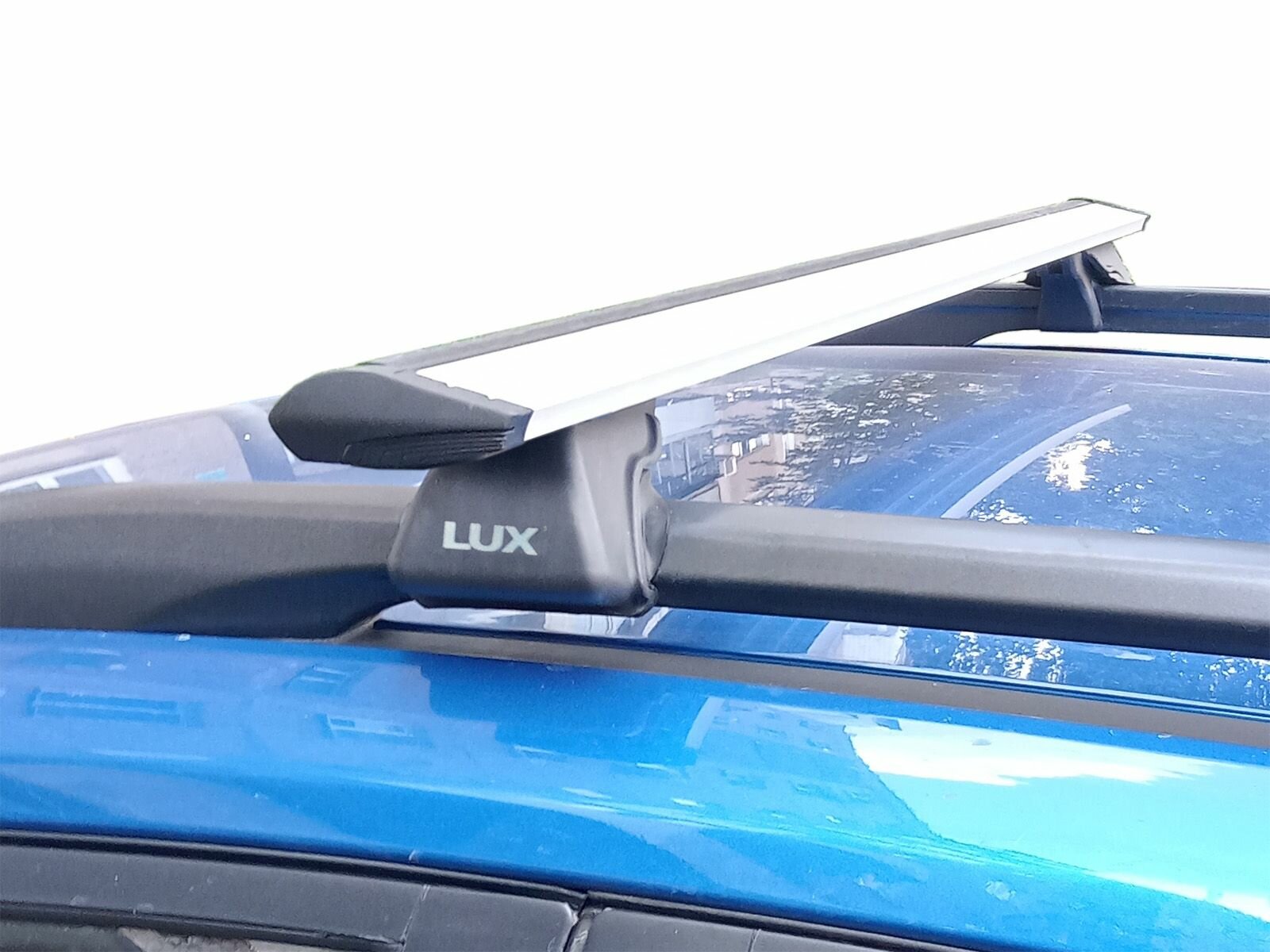 | Дополнительная информация | Багажник на рейлинги Kia Rio X-line (2017-2021), марка Lux, с серебристыми крыловидными дугами. |