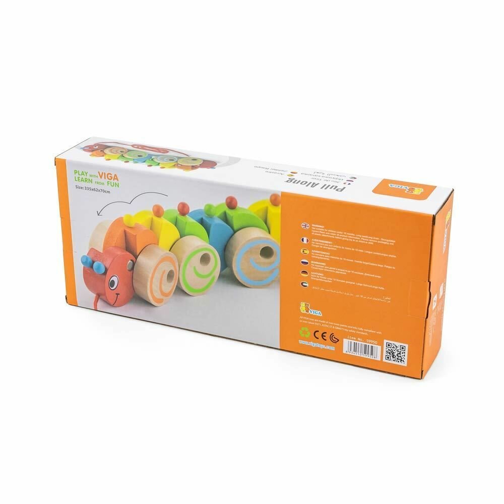 Каталка на веревочке Viga Гусеница, в коробке 59950 интересное: