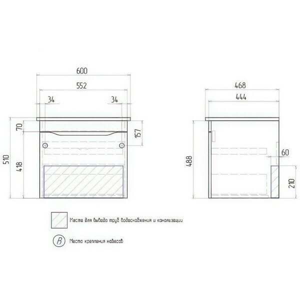 Тумба VIGO Grani 60-0-1 подвесная 1ящ (под раковину Элина 60) (tp.GRI.ELI.60.1Y) интересное: