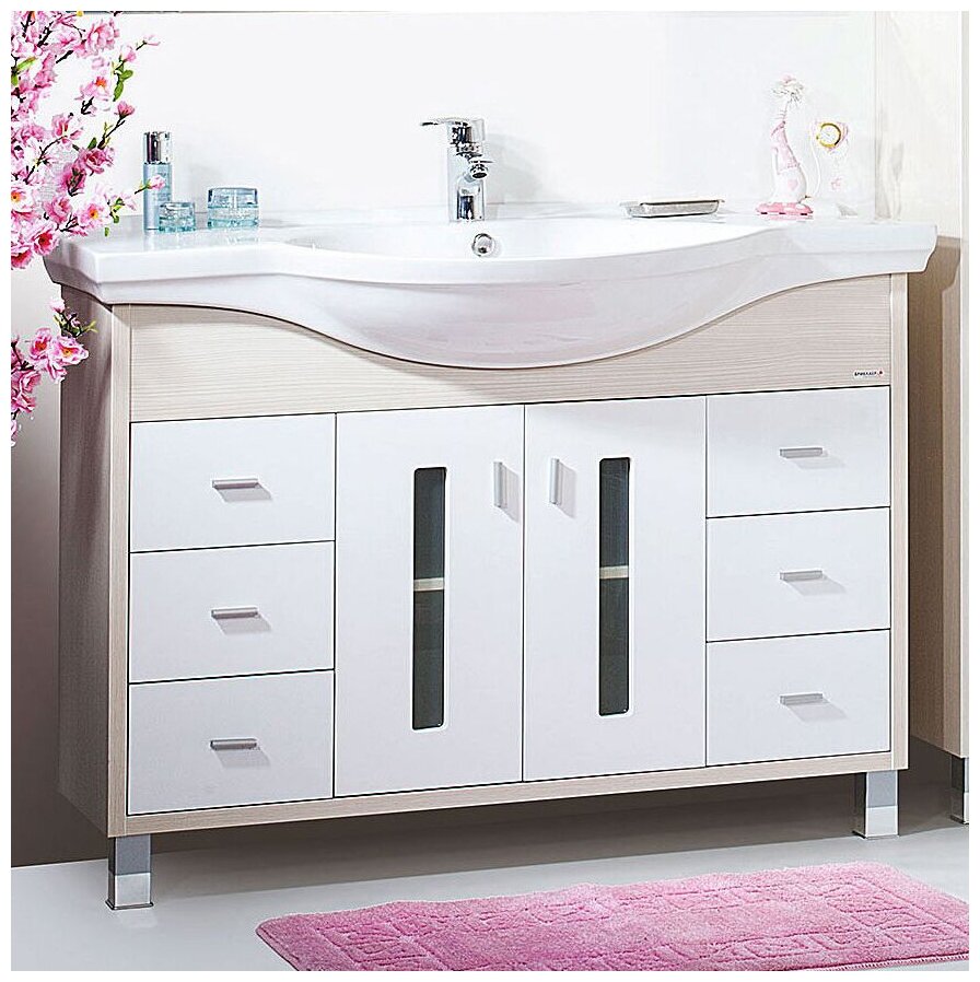 Купить Тумба для ванной Бали 120 Светлая лиственница / белый глянец