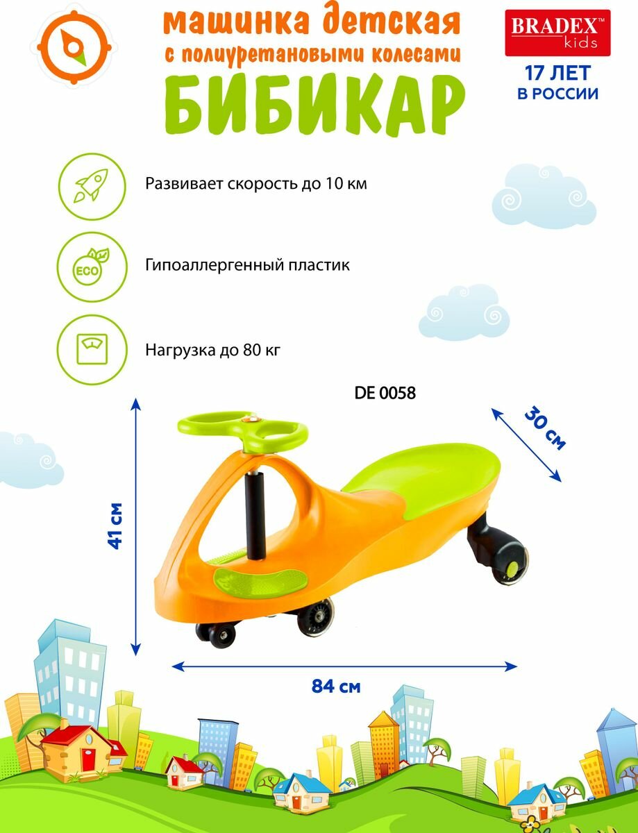 СохранитьBRADEX Машинка детская с полиуретановыми колесами салатово-оранжевая «бибикар», BRADEX интересное: