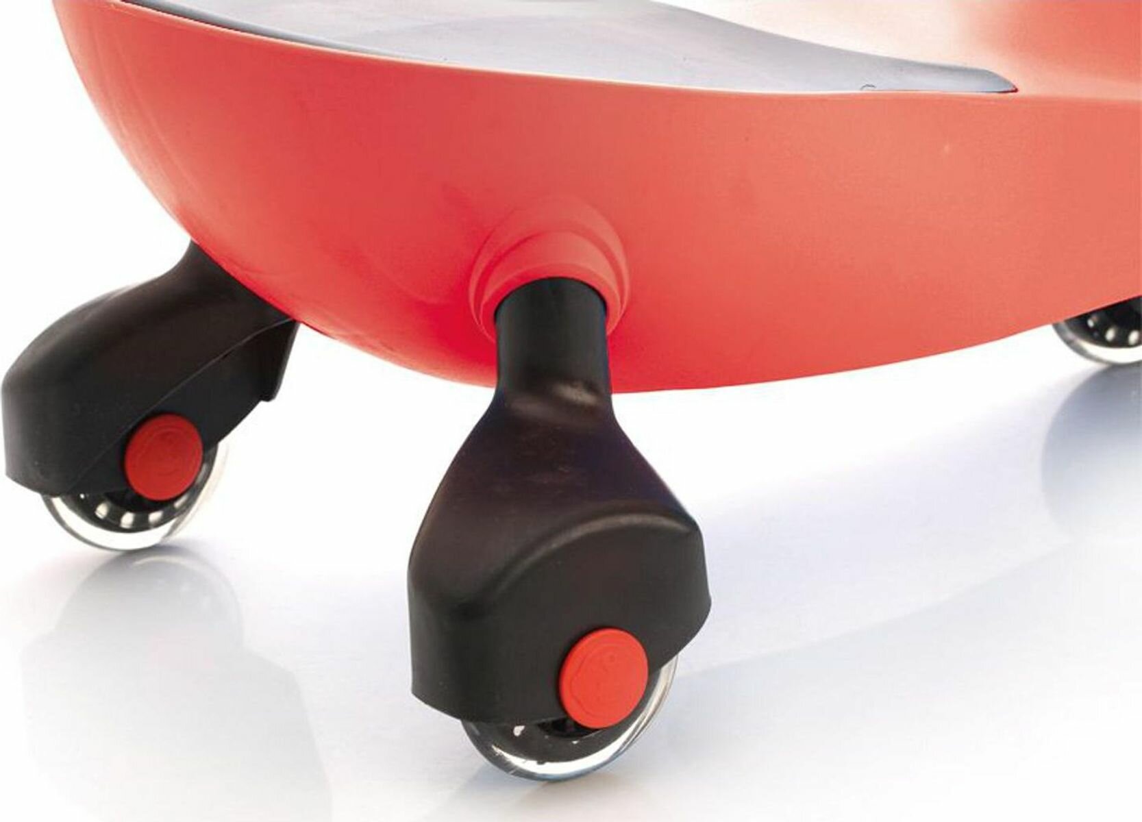 | Плюсы: | Яркая, достаточно прочный пластик, полиуретановые колеса. |