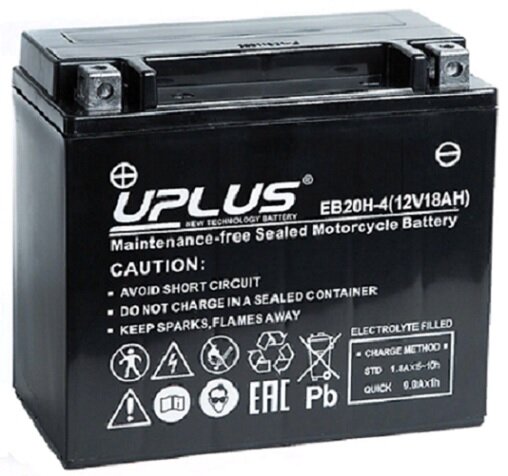 Аккумулятор для мото и гидро техники UPLUS High Perfomance AGM 18 А/ч 310 А прям. пол. залит/заряжен EB20H-4 (175х87х155) YTX20H-BS YTX20-BS интересное: