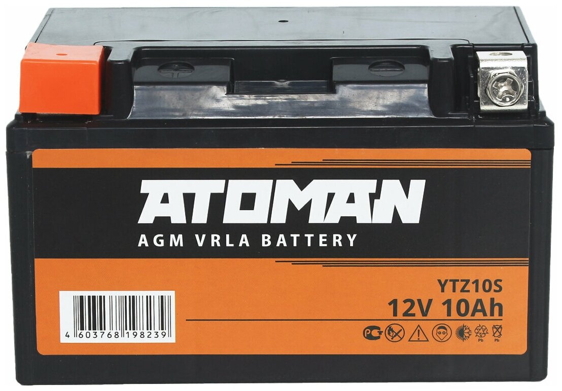 Аккумулятор Мото ATOMAN AGM 12V 10Aч (YTZ10S) прямая полярность интересное: