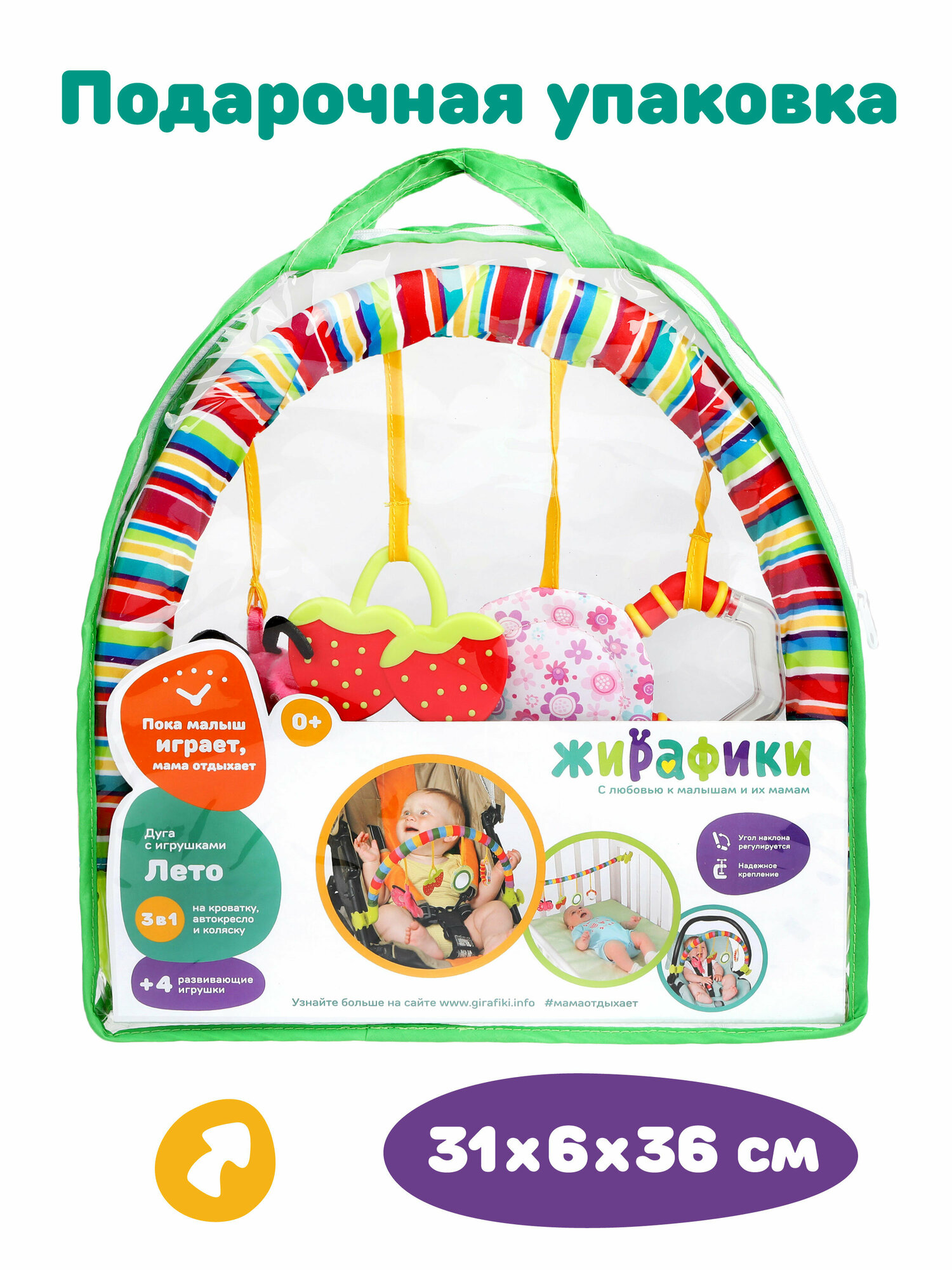 Дуга с игрушками в кроватку, коляску, автокресло Лето Жирафики