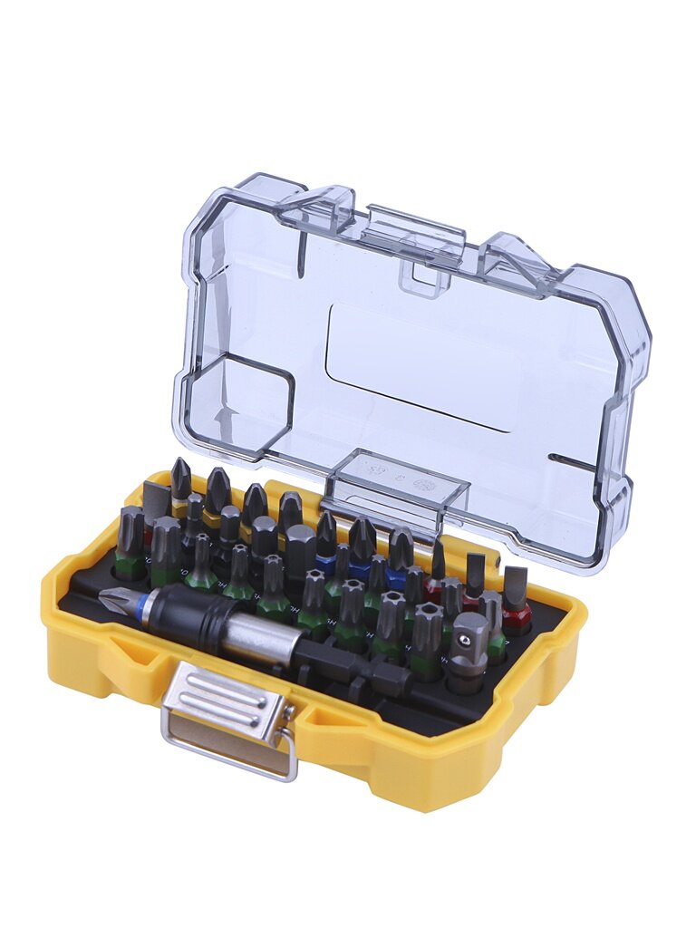 Набор бит для шуруповертов (32шт): биты, держатель со стопорным кольцом в пластиковом боксе DEWALT DT7969-QZ