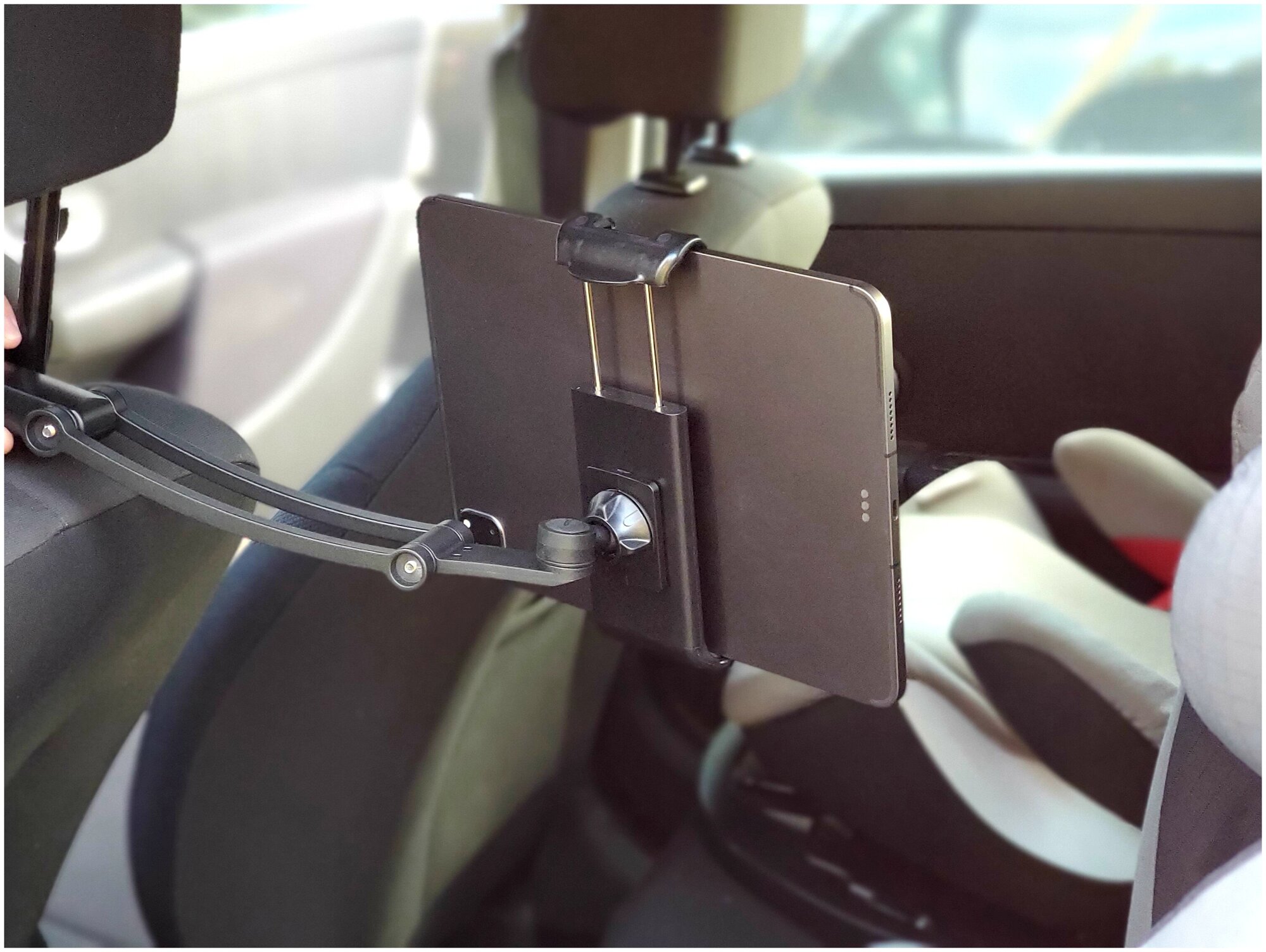 | Дополнительная информация | универсальный автомобильный держатель для планшетов и смартфонов на подголовник. Подходит на большинство моделей автомобилей (расстояние внутри направляющих должно быть 11см - 14,5см. Поворот экрана 180 градусов и регулировка по вылету и наклону. Возможность крепления как небольшого смартфона (например iPhone 7/8 и др.) так и планшеты 10" и даже iPad Pro 11". |