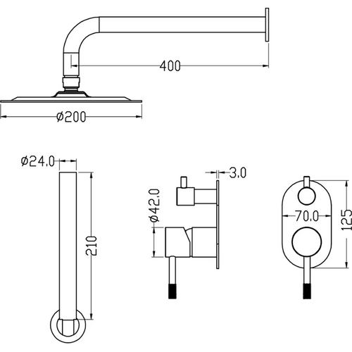 | Комплектация | душевой шланг / душевая лейка / переключатель потоков / кронштейн для верхнего душа |