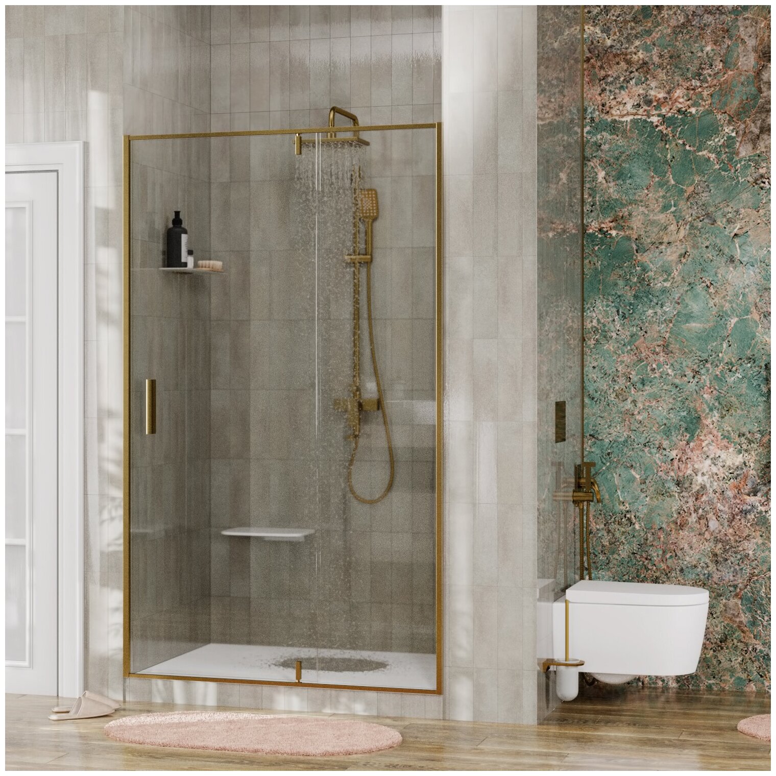 Душевая дверь, матовое золото, WasserKRAFT Aisch 55P04