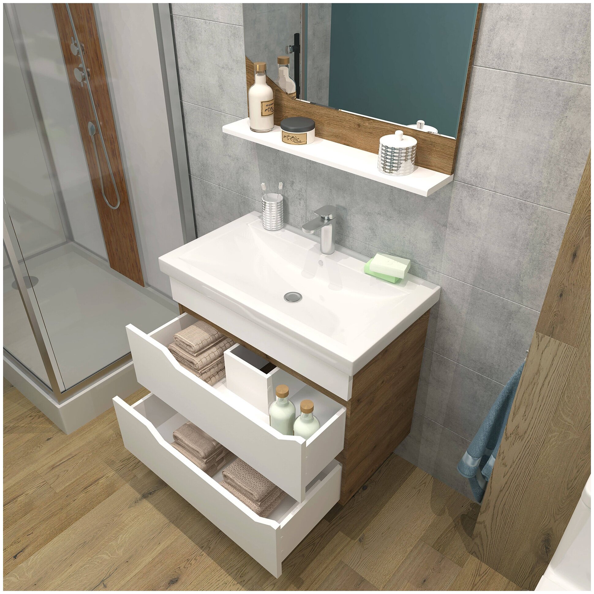 Тумба для ванной с раковиной / комплект / EvaGold Liberty 80 № 2 белая раковина Cersanit Como 80 интересное: