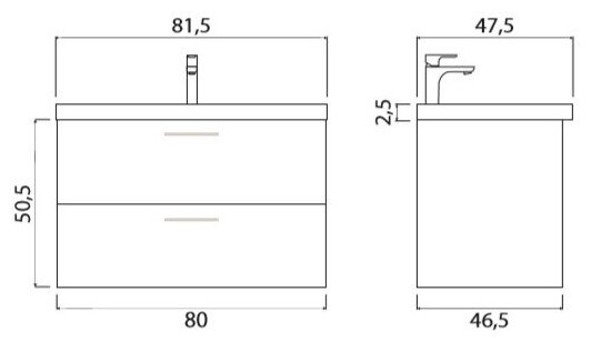 Тумба с раковиной подвесная Creto Ares 80 серая 10-1113B+1113-001-0126