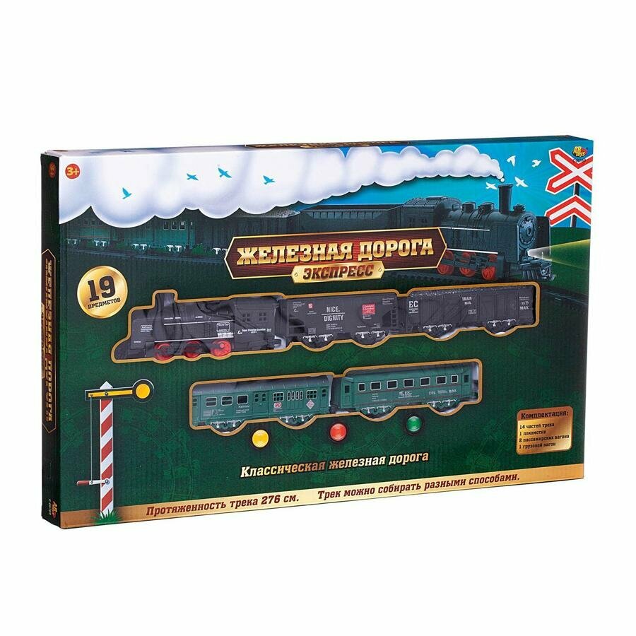 Железная дорога Экспресс, классика, 201 см, эл/мех, 19 предметов в наборе, в коробке - ABtoys [C-00169]