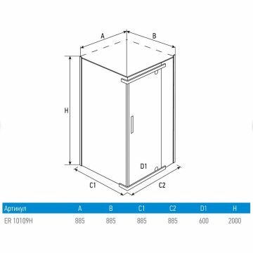 Душевое ограждение Erlit ER10109H-C1 (900x900x2000) квадратное, прозрачное