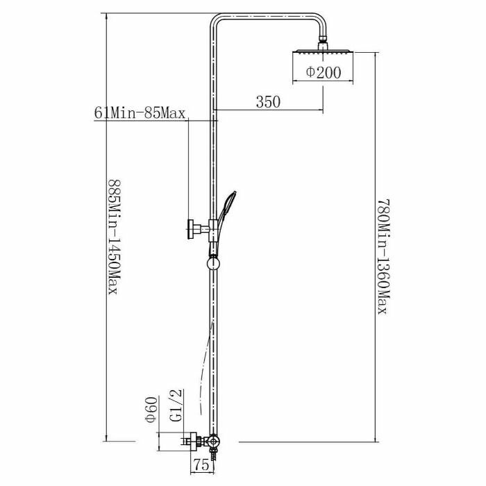 | Комплектация | душевая стойка / шланг / Смеситель / верхний душ / штанга / лейка / шланг / эксцентрики / декоративные чашки |