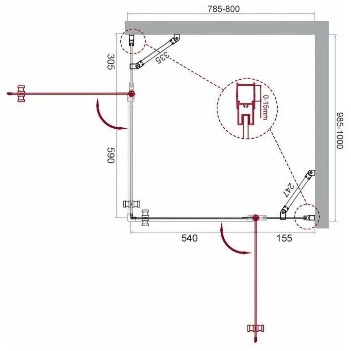Душевой уголок BelBagno Etna AH-22-80/100-C-Cr ETNA-AH-22-80/100-C-Cr