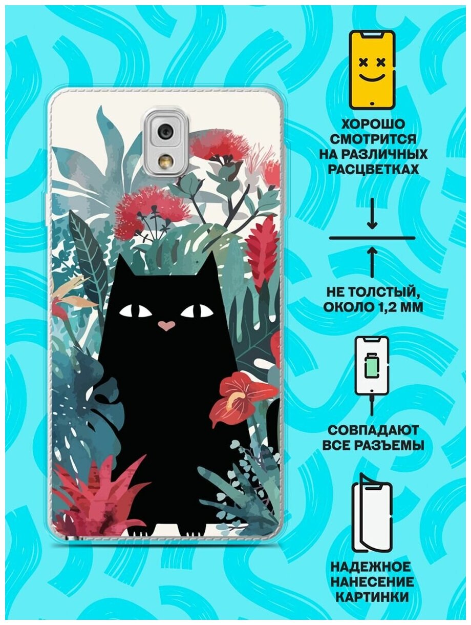 Силиконовый чехол на Samsung Galaxy Note 3 Черный кот / для Самсунг Галакси Ноут 3 интересное: