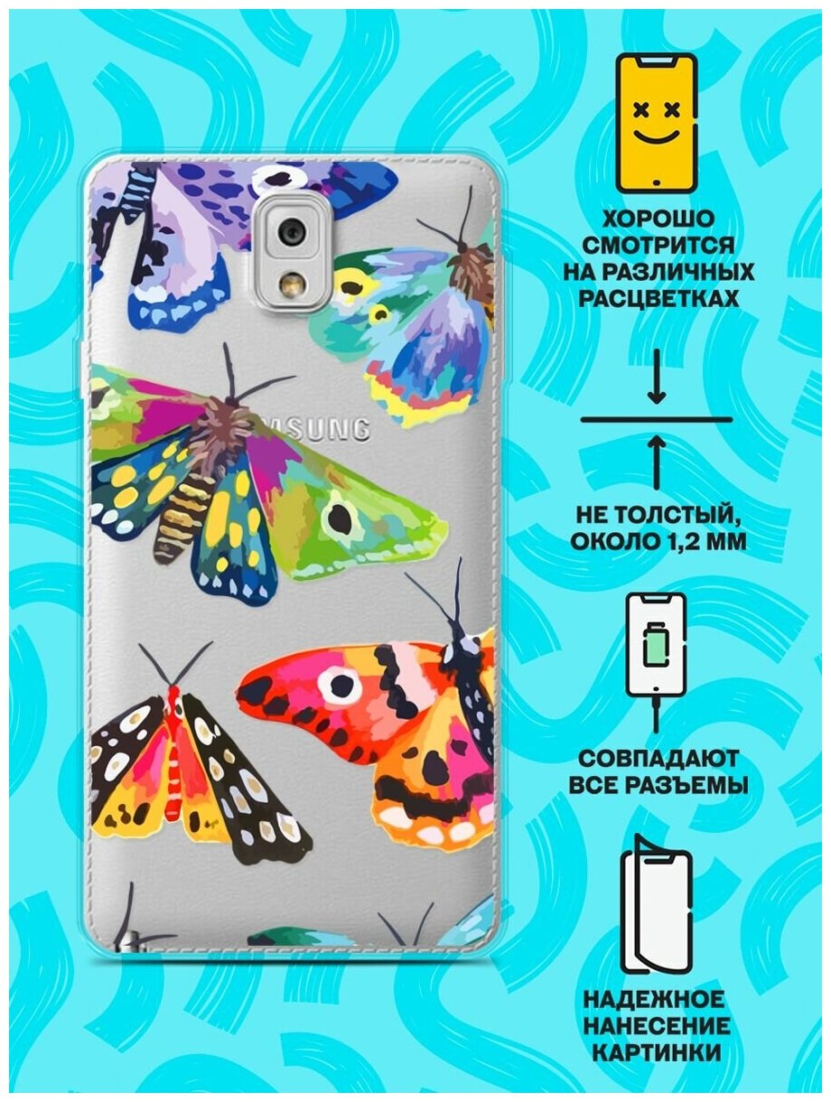 Силиконовый чехол на Samsung Galaxy Note 3 Бабочки / для Самсунг Галакси Ноут 3 интересное: