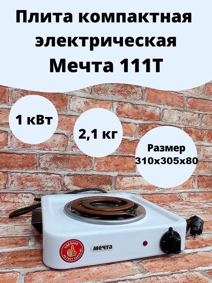 Купить Плита настольная электрическая Мечта 111Т, 1 конф, ТЭН-конфорка, белая