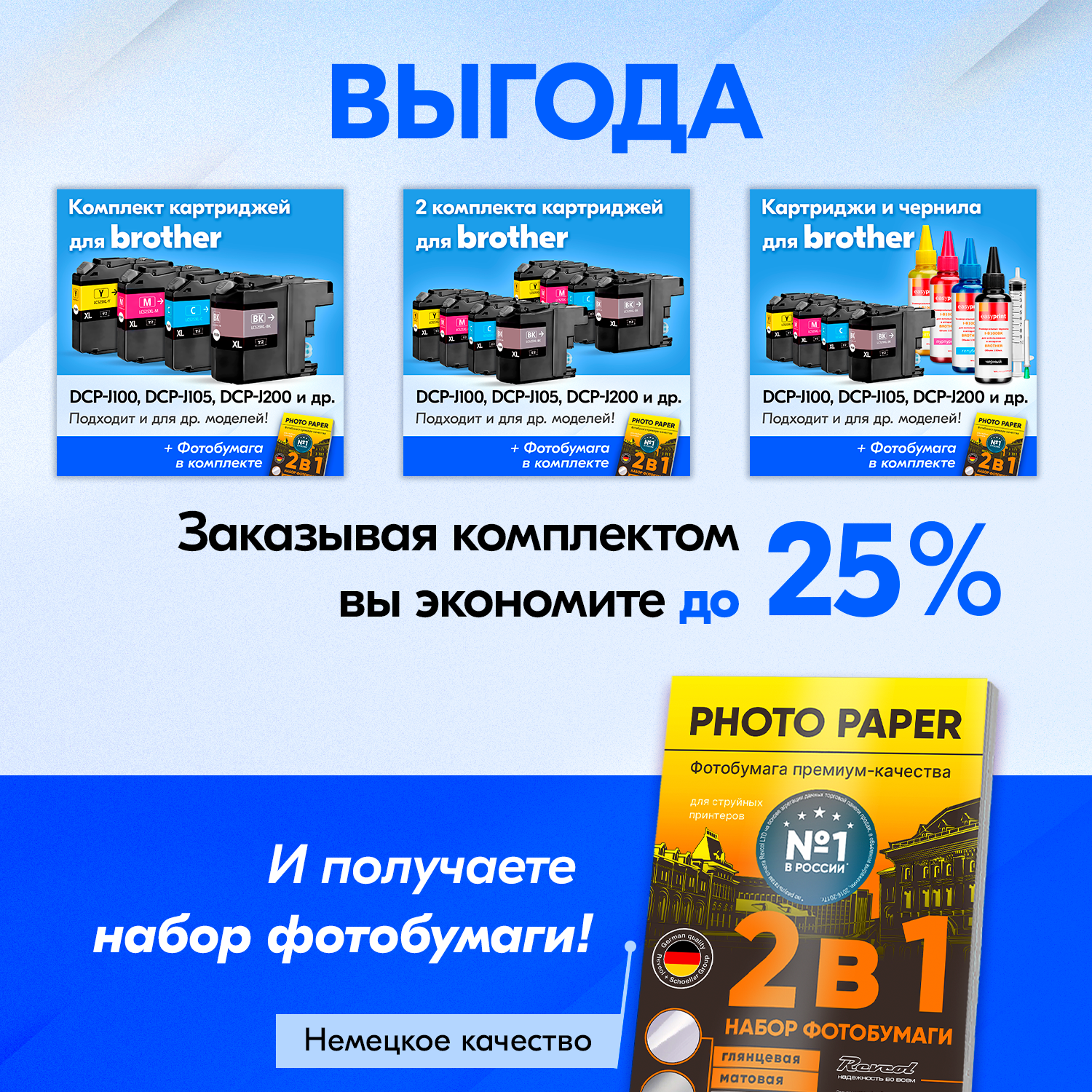 Картриджи для Brother DCP-J100, DCP-J105, DCP-J200 и др, с чернилами, Черный (Black), Голубой (Cyan), Пурпурный (Magenta), Желтый (Yellow), 4 шт.