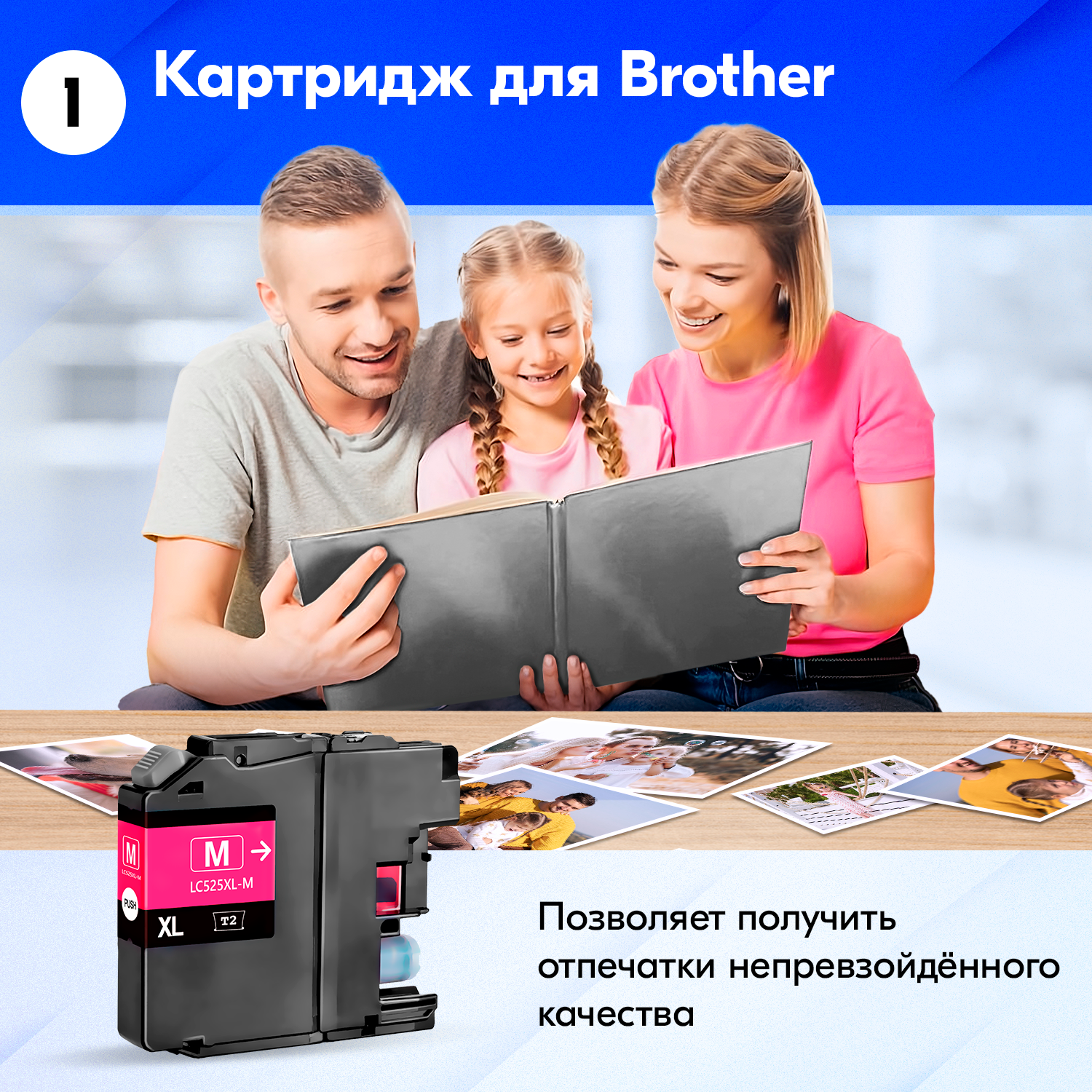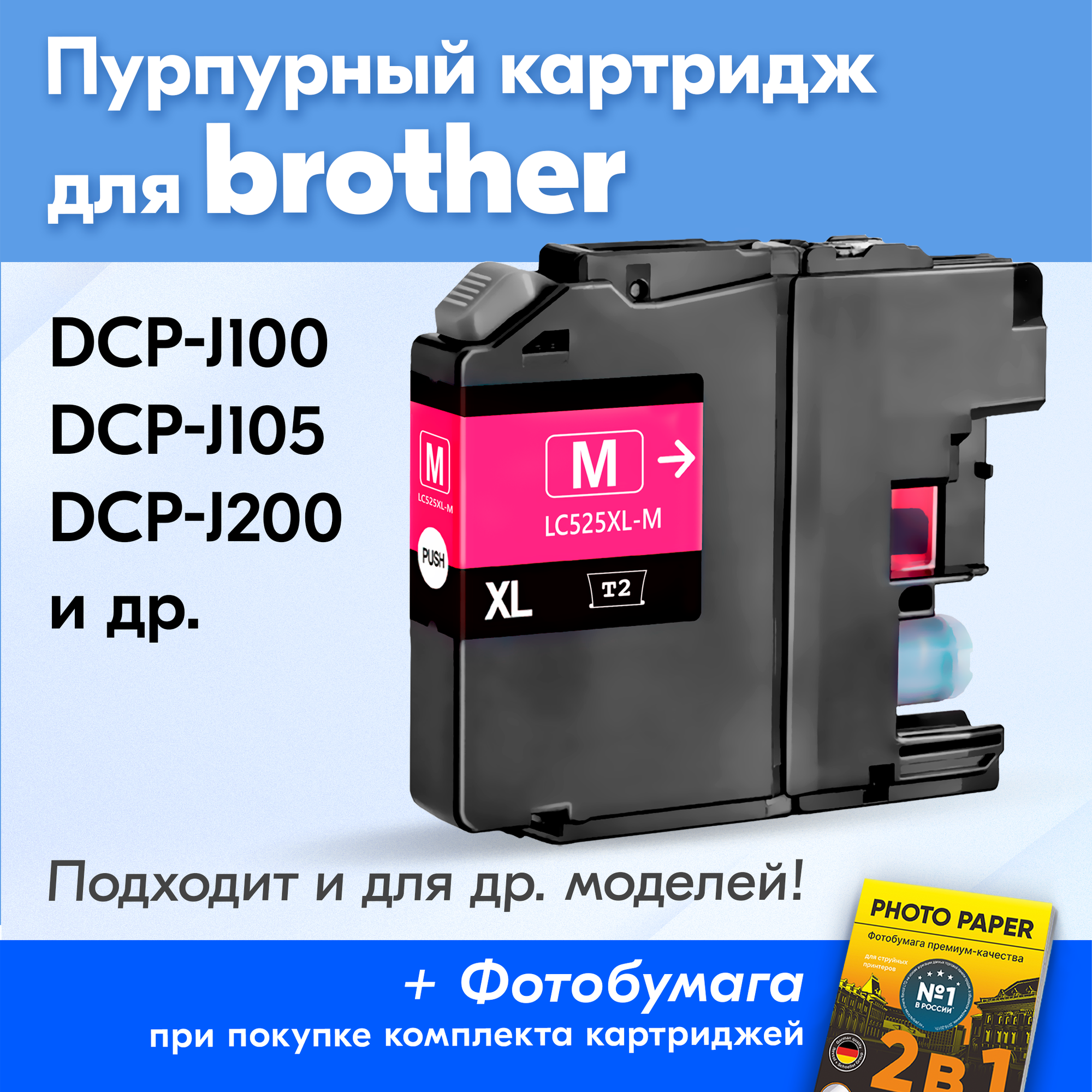 Купить Картридж для Brother LC-525XLM, Brother DCP-J100, DCP-J105, DCP-J200 и др. с чернилами пурпурный новый заправляемый, 1300 копий