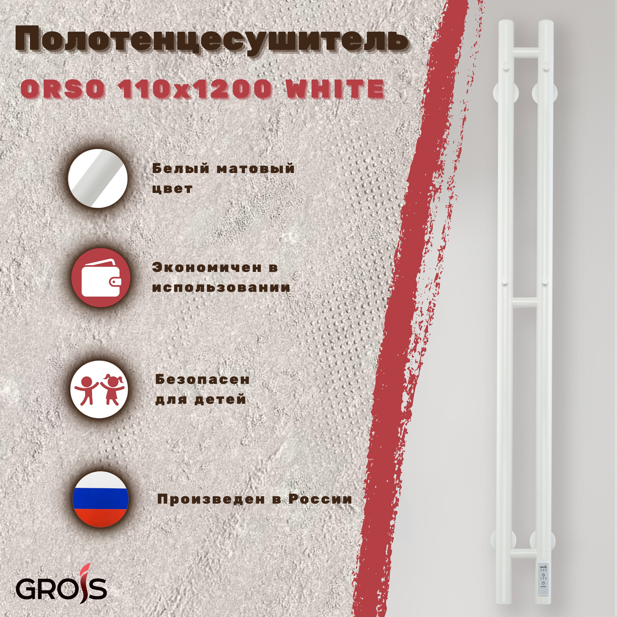 Купить Полотенцесушитель электрический Grois Orso 112мм 1200мм , белый матовый подключение справа