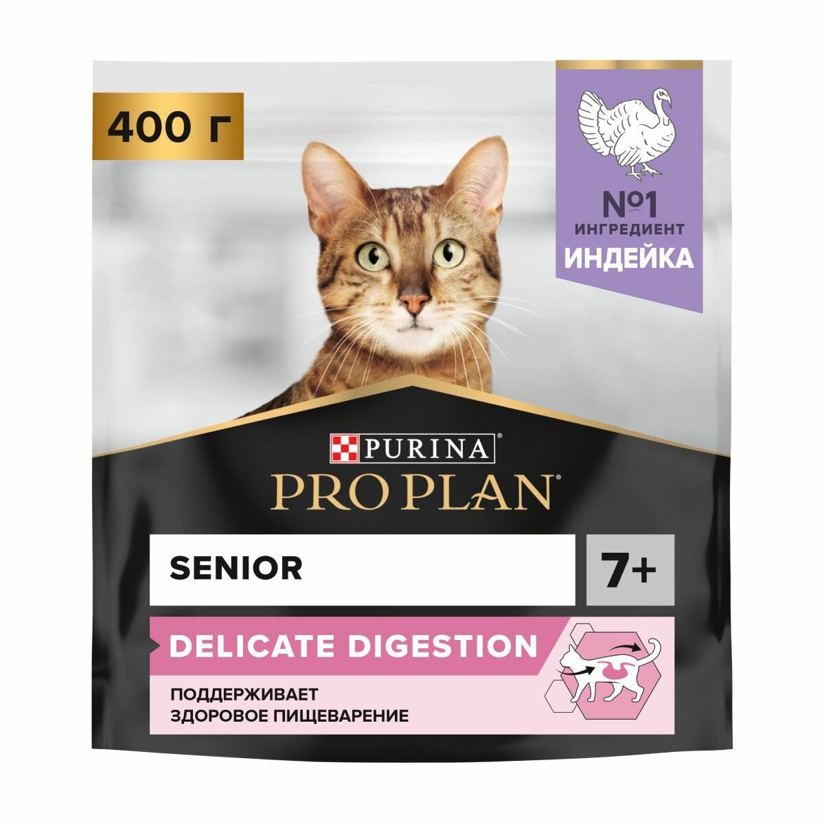 Сухой корм PRO PLAN Delicate Digestion для кошек 7+ для чувствительного пищеварения, с индейкой 400г 2шт