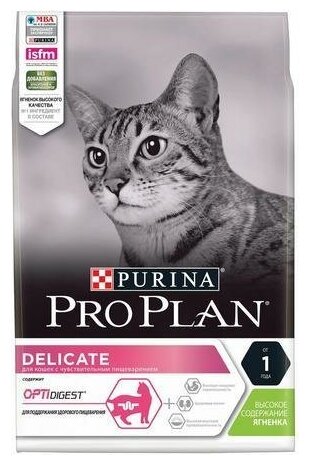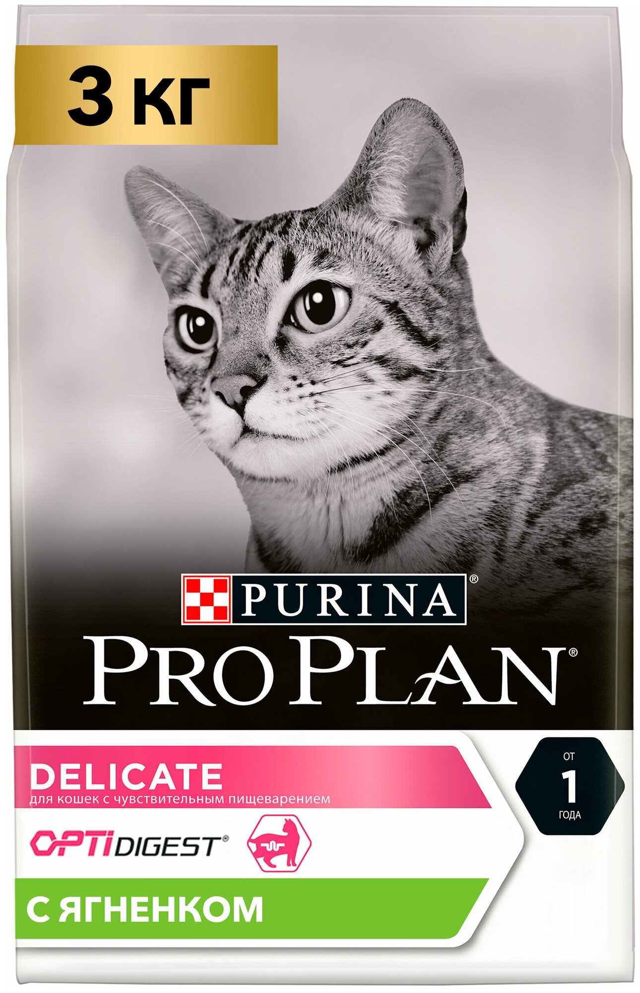 Корм сухой Pro Plan Delicate Adult OPTIdigest для взрослых кошек с чувствительным пищеварением, ягненок, 3 кг