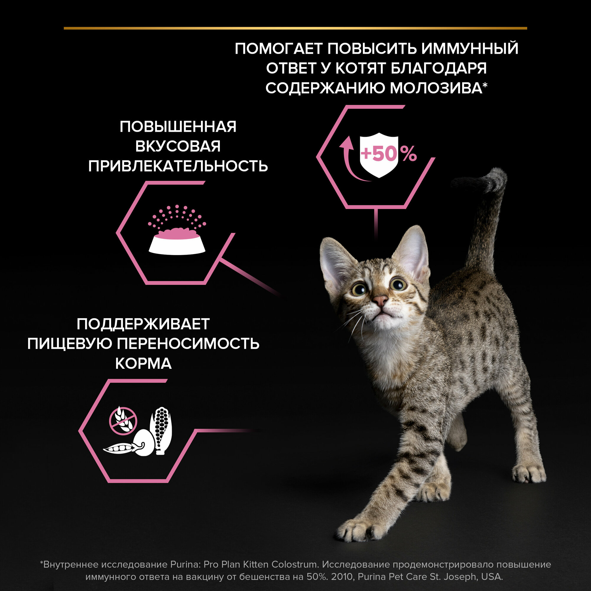 | Дополнительная информация | переводите котенка на корм PRO PLAN Junior Delicate в возрасте 3‐4 недели; для более легкого поедания корм следует смешивать с водой; постепенно уменьшайте количество добавляемой для размачивания воды до того момента, когда котенок сможет есть не размоченный корм; придерживайтесь 2-3 разового кормления или давайте корм по необходимости; для беременных кошек минимальная суточная норма 90 г/день, для кормящих — минимальная суточная норма 180 г/день или по необходимости; рекомендации по кормлению, позволяющие поддерживать идеальную форму, могут варьироваться в зависимости от возраста животного, его активности и условий окружающей среды; следите, чтобы у вашей кошки всегда была чистая, свежая питьевая вода |