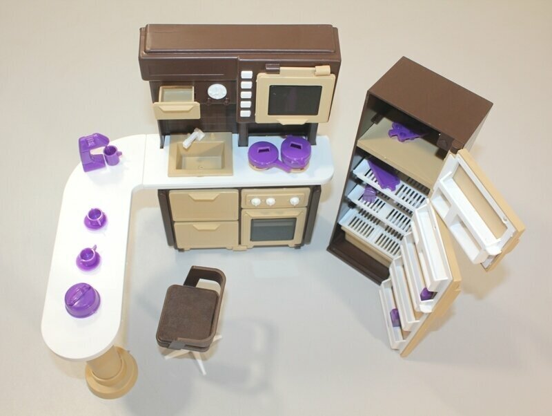| Комплектация | плита с раковиной в сборе, холодильник, стол, подставка стола в сборе, стойка стула в сборе, сиденье стула, полукорпус миксера левый, полукорпус миксера правый, чашка для миксера, насадка для миксера, подставка для яиц, сковородка, корпус чайника, дно чайника, ручка чайника, судок, кастрюля, чашка - 2 шт, блюдце - 2 шт, крышка - 2 шт, пакет - 2 шт, бутылка - 2 шт, пробка бутылки - 2 шт |