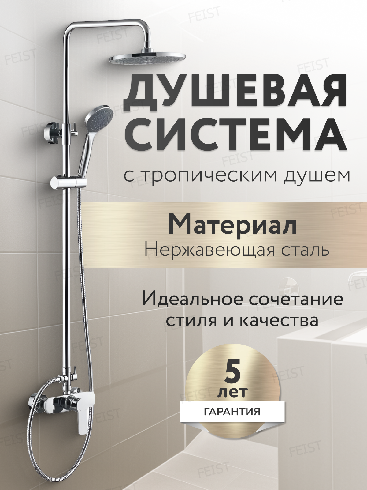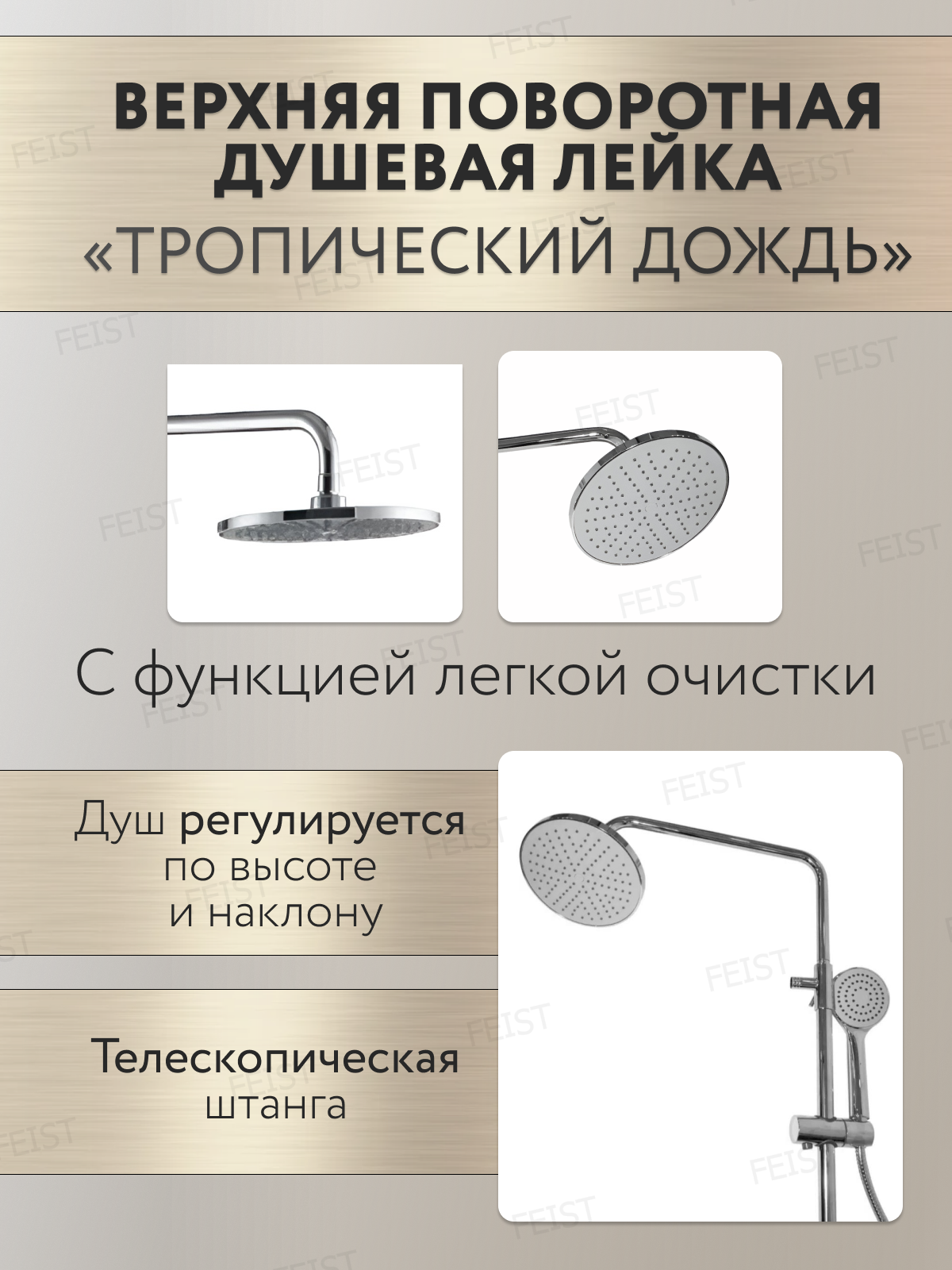 Душевая стойка c верхним тропическим душем, лейкой в комплекте, хром интересное:
