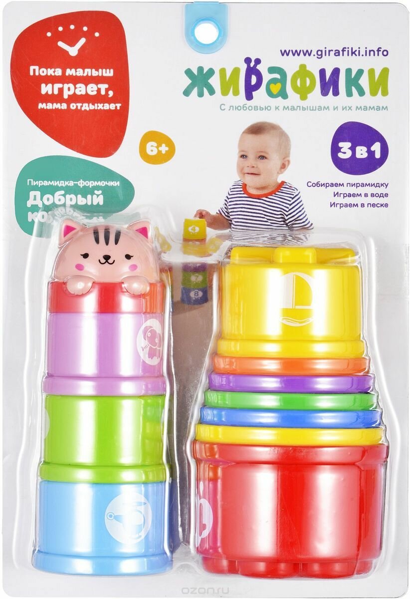 Купить Пирамидка-формочки "Добрый кот" игрушка Жирафики 939491