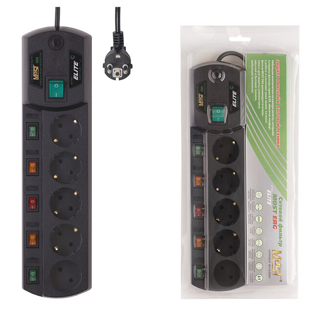 cетевой фильтр MOST ЕRG Elite 5 гнезд 3 м черный интересное: