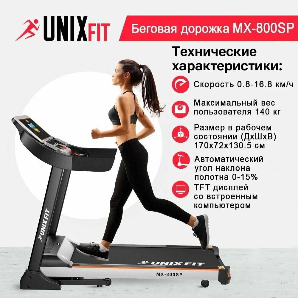 Беговая дорожка UNIXFIT MX-800SP + аксессуары для фитнеса интересное: