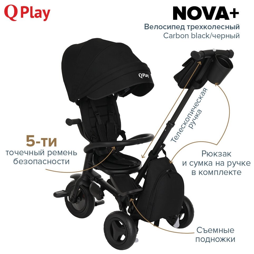 СохранитьТрехколесный складной велосипед Qplay Nova+ 2023 Carbon black/черный интересное: