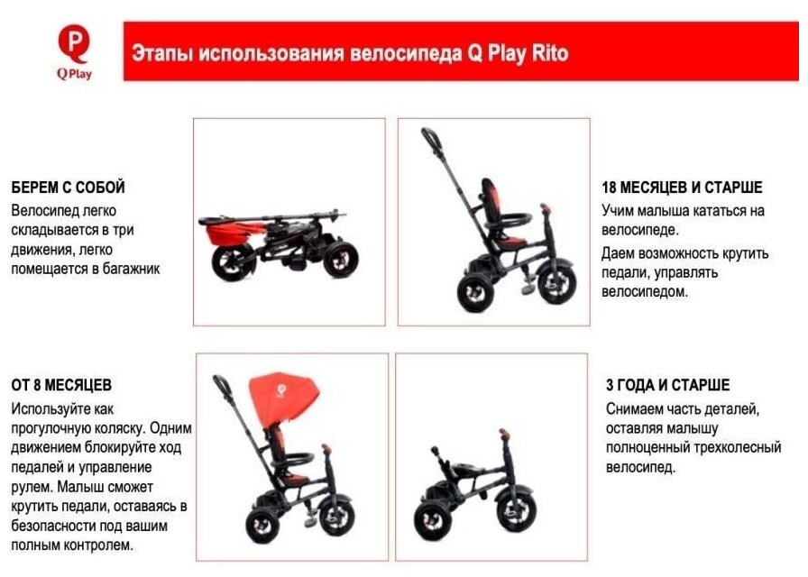 Ниже Вы можете прочитать отзывы на Складной велосипед коляска детский трехколесный QPLAY RITO с ручкой управления , надувные колеса 10"/8", ознакомится с подробными характеристиками, посмотреть интересные обзоры и фотографии на Складной велосипед коляска детский трехколесный QPLAY RITO с ручкой управления , надувные колеса 10"/8".