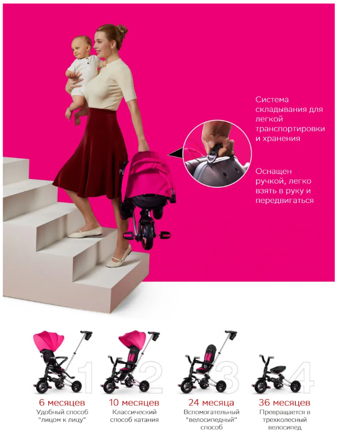 Велосипед-коляска Qplay NOVA PLUS 2022 розовый интересное: