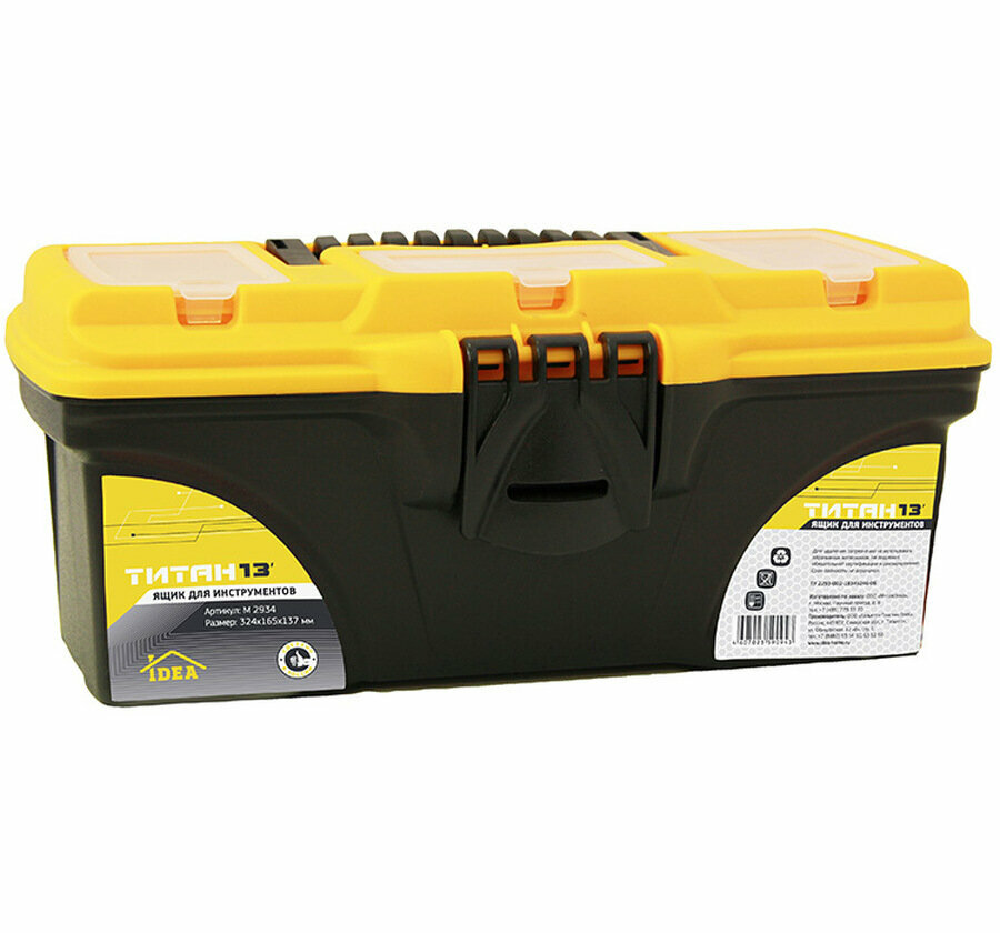 Ящик для инструментов титан 13" (с секциями) черный с желтым IDEA (М-Пластика) М2934