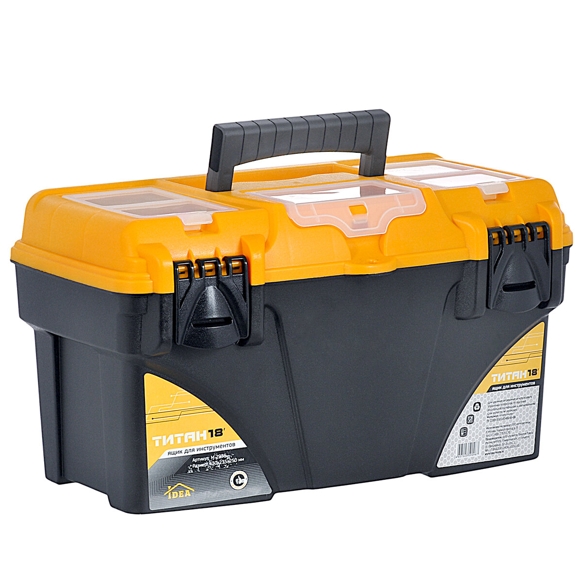 Купить Ящик для инструментов, 18 '', 43х23.5х25 см, пластик, Idea, Титан, пластиковый замок, 3 секции, М 2936