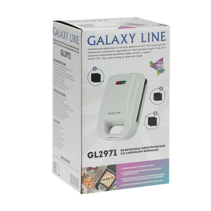 Galaxy Электровафельница Galaxy GL 2971, 750 Вт, венские вафли, антипригарное покрытие, белая интересное: