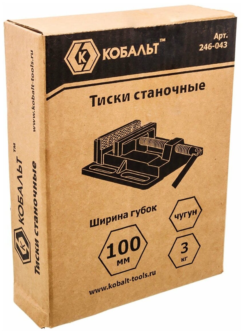 Тиски станочные кобальт ширина губок 100 мм, захват 110 мм, 3 кг, коробка (246-043)