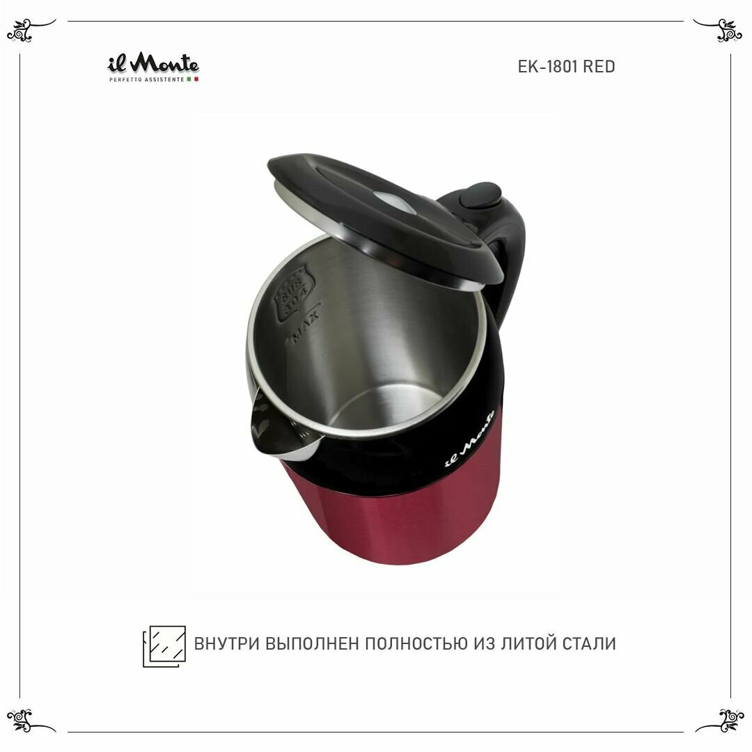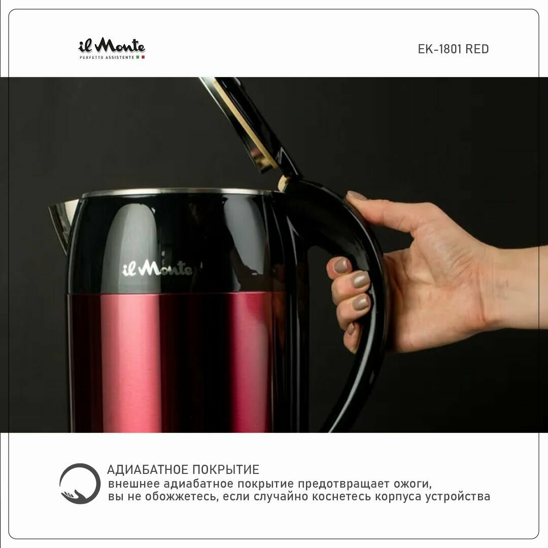 Чайник электрический с адиабатным покрытием, литая сталь внутри, il Monte EK-1801 RED