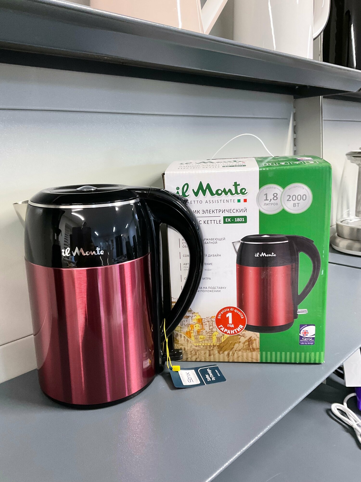 Чайник электрический, Strix, Противоожоговый корпус, Нержавеющая сталь, 1,8 л, il Monte EK-1801