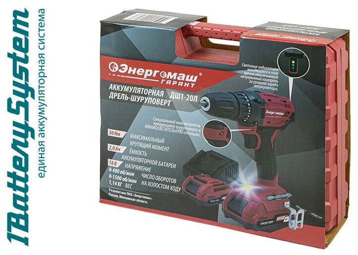 Шуруповерт энергомаш Гарант ДШ1-20Л (1batterysystem) (энергомаш)