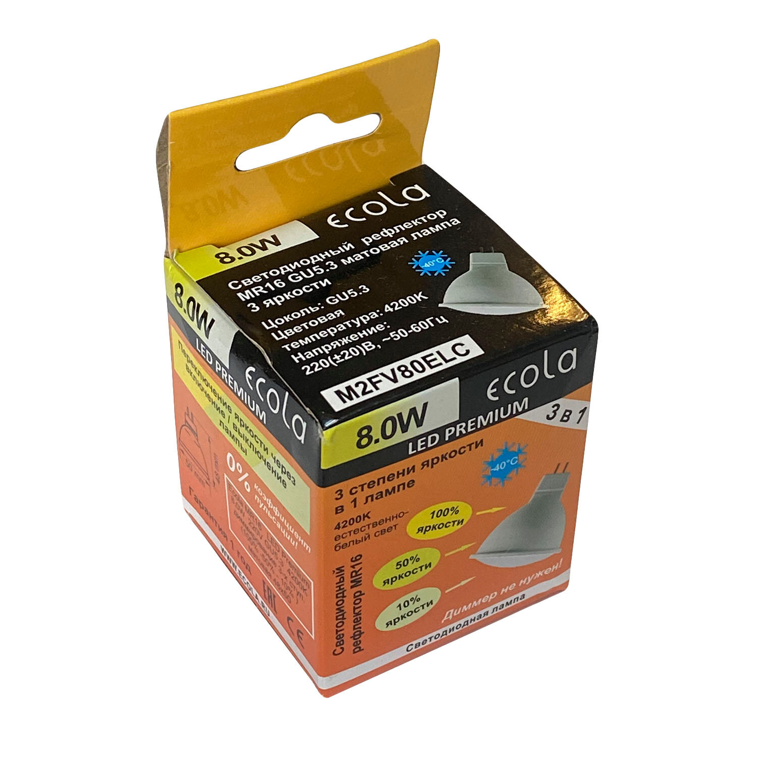 Ecola MR16 GU5.3 св/д 3 ступени димм. 8W 4200K 4K (шаг 100%/50%/10%) 48x50 матов. Premium M2FV80ELC интересное: