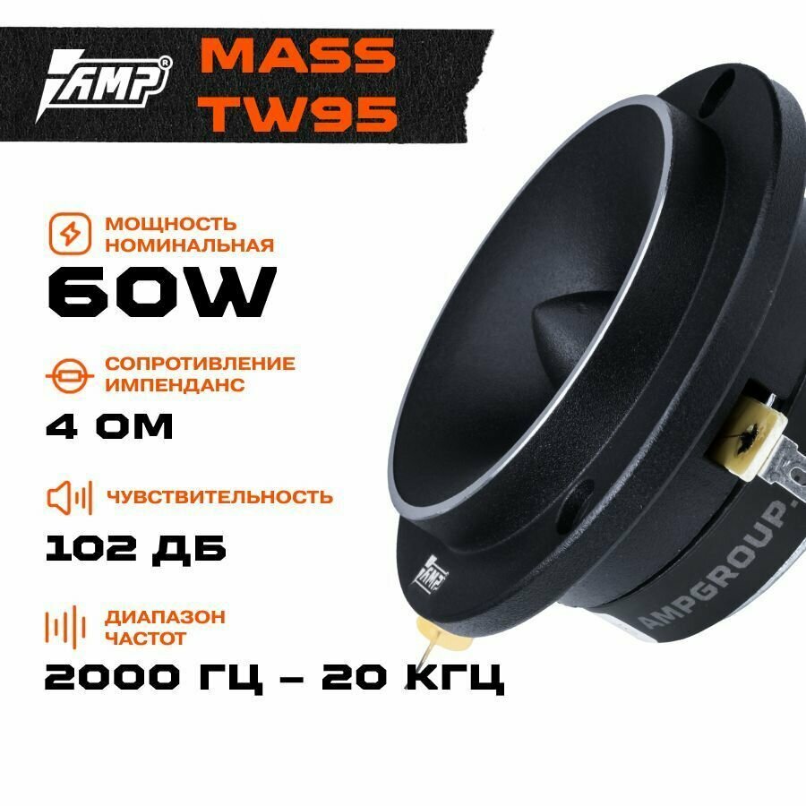 Акустика эстрадная AMP MASS TW95 / Твитер автомобильный / Комплект 1 твитер /