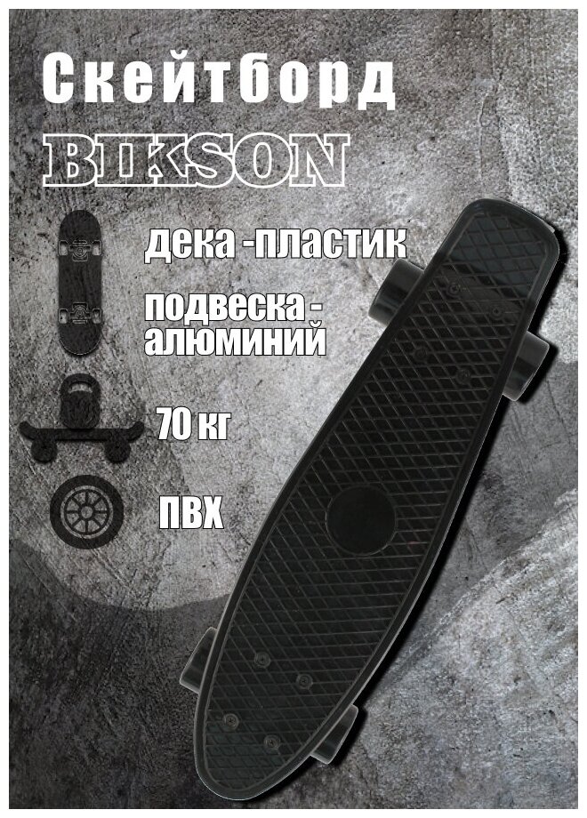 Скейтборд пластик 22*6", шасси Al, занижен, колёса PVC 60мм, черный / скейтборд детский интересное: