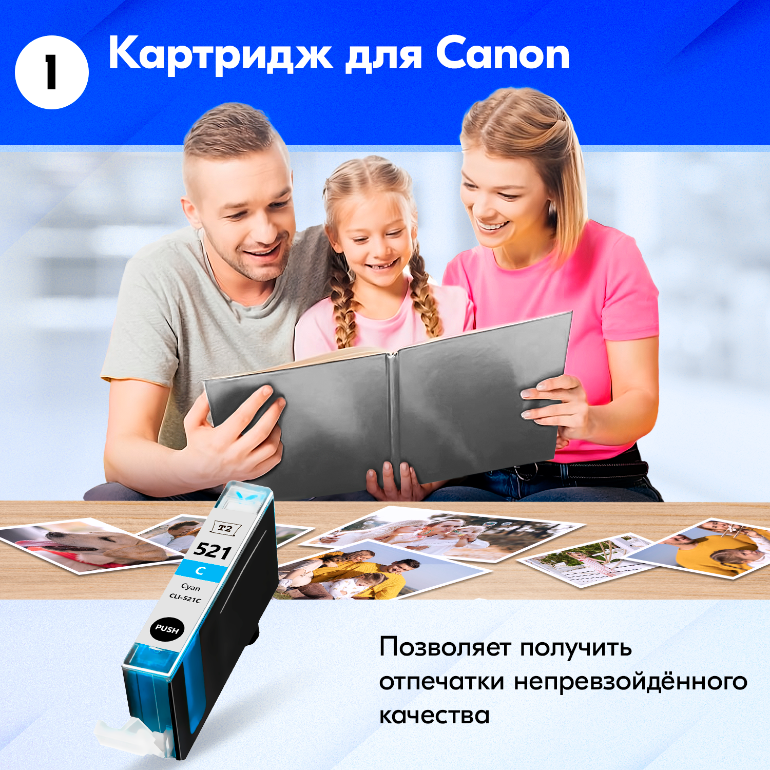 СохранитьКартридж для Canon CLI-521C XL, Canon PIXMA iP3599, MP550, MP540, iP4600, MP630 и др., с чернилами голубой новый, увеличенный объем, заправляемый интересное: